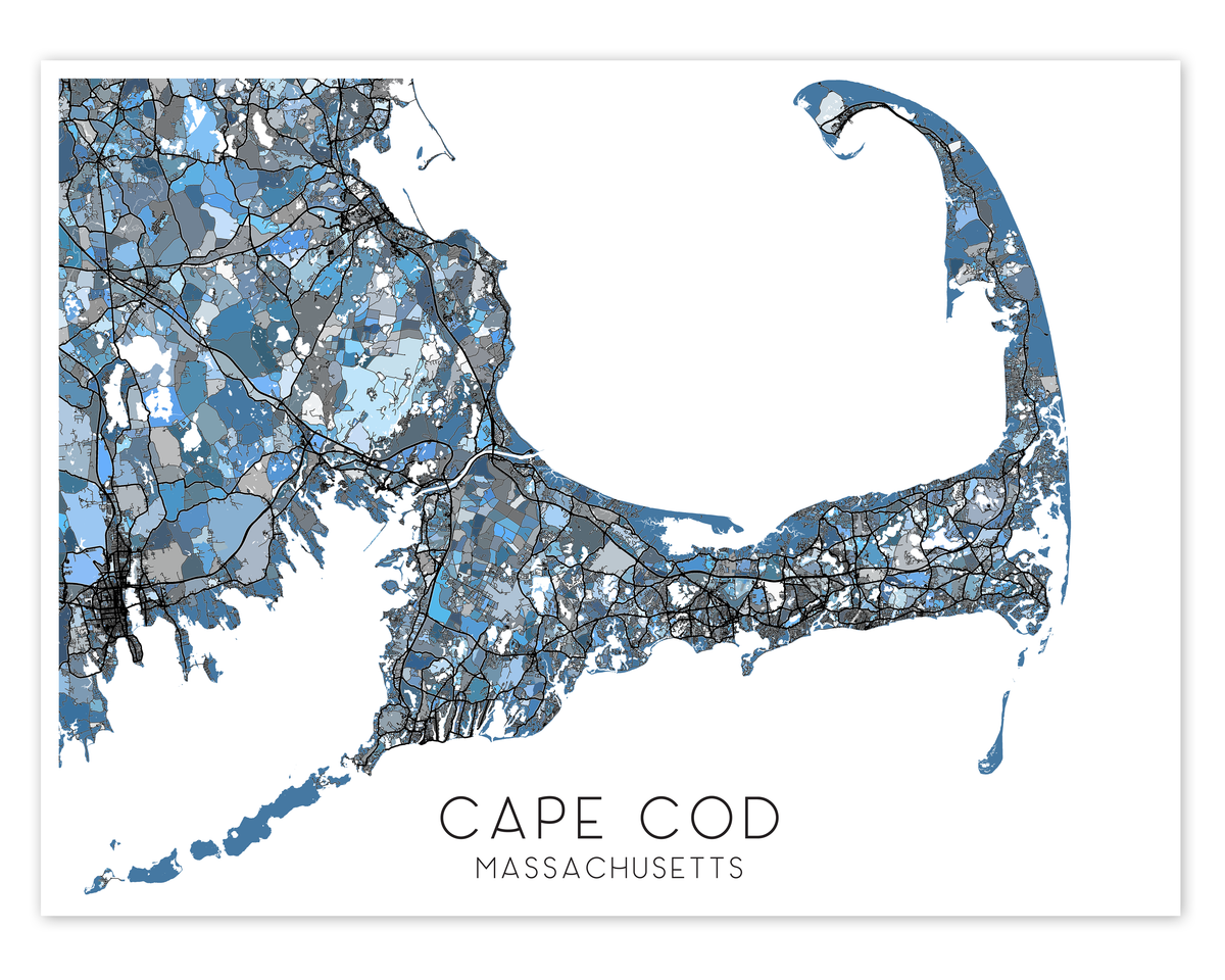 Cape Cod Map Print Poster Blue Geometric Cape Cod Wall Art