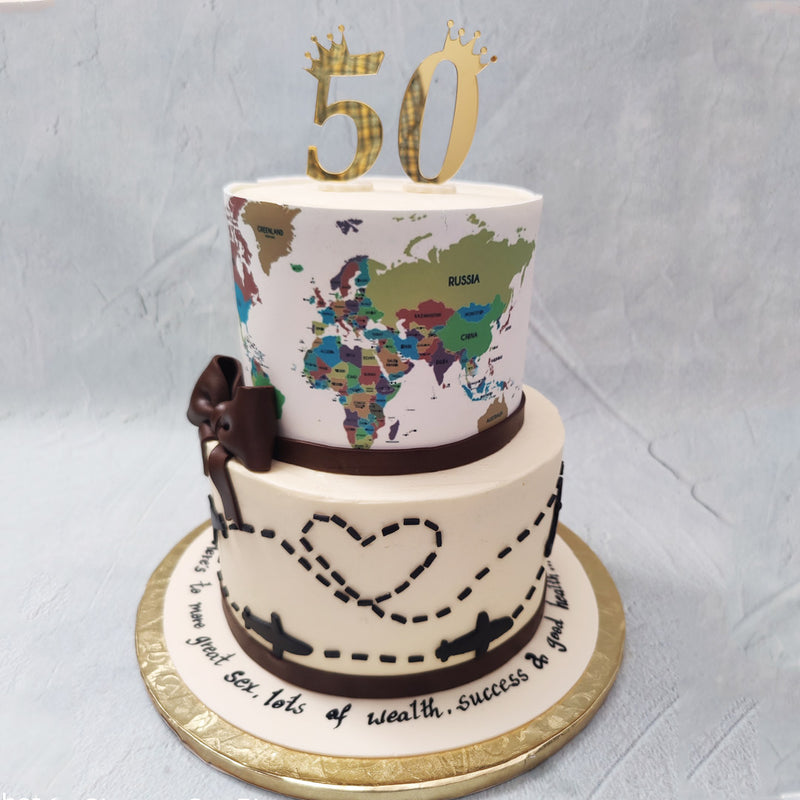 Two Tier World Map Cake | World Map Birthday Cake | Order Custom