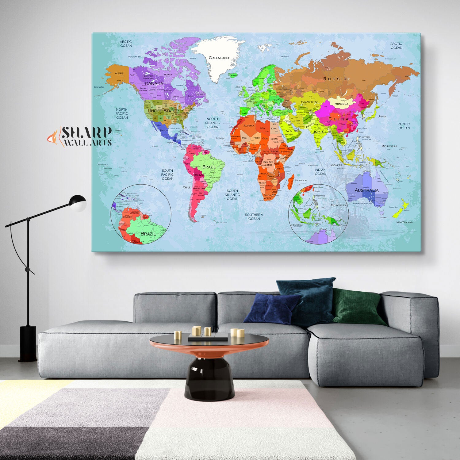 World Map Wall Art Canvas Print Large Hone Decor For Living Room