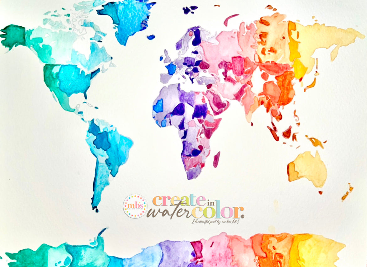 MB’s Create in WaterColor Paint by Number Kit: RAINBOW WORLD MAP